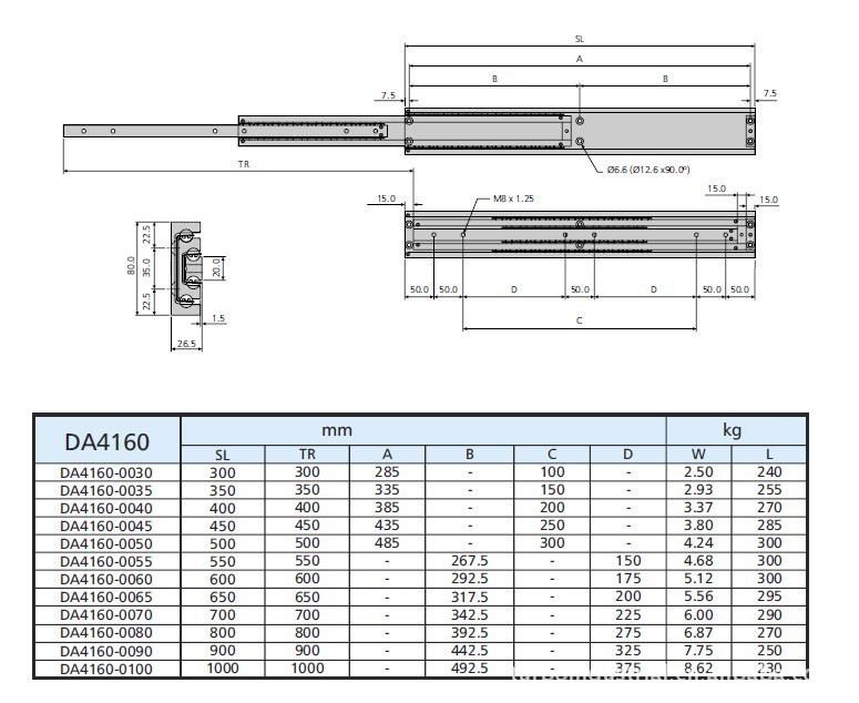 雅固拉uride 铝合金 重载滑轨 AL4160