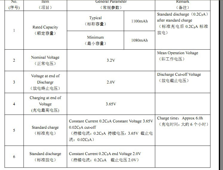 旗下磷酸铁锂电池型号:10440、14430、14500、16340、17335、18500、18650、22430、22650、32600、32650、32900、42110、42120等多款型号,单只最大42120-10AH