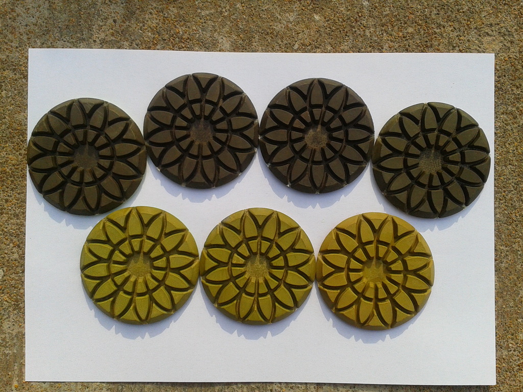 此种莲花状混凝土干湿磨片,厚度为5mm,直径80mm,磨片具有锋利度好,起光好等优点,分别有50#、100#、200#、400#、800#、1500#、3000#这七个目数,多用于大型机器混凝土的干湿打磨,由于此磨片质量一直比较稳定,所以销量大约为10000片|月。