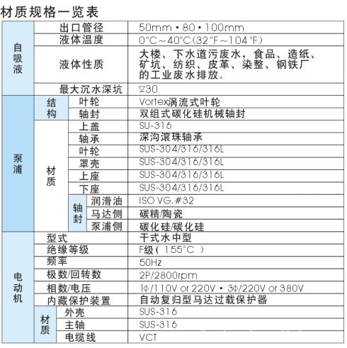 1.整体外壳采用不锈钢SUS#316材质脱腊精密铸造制成,专抽取有微酸弱碱之污物废水。