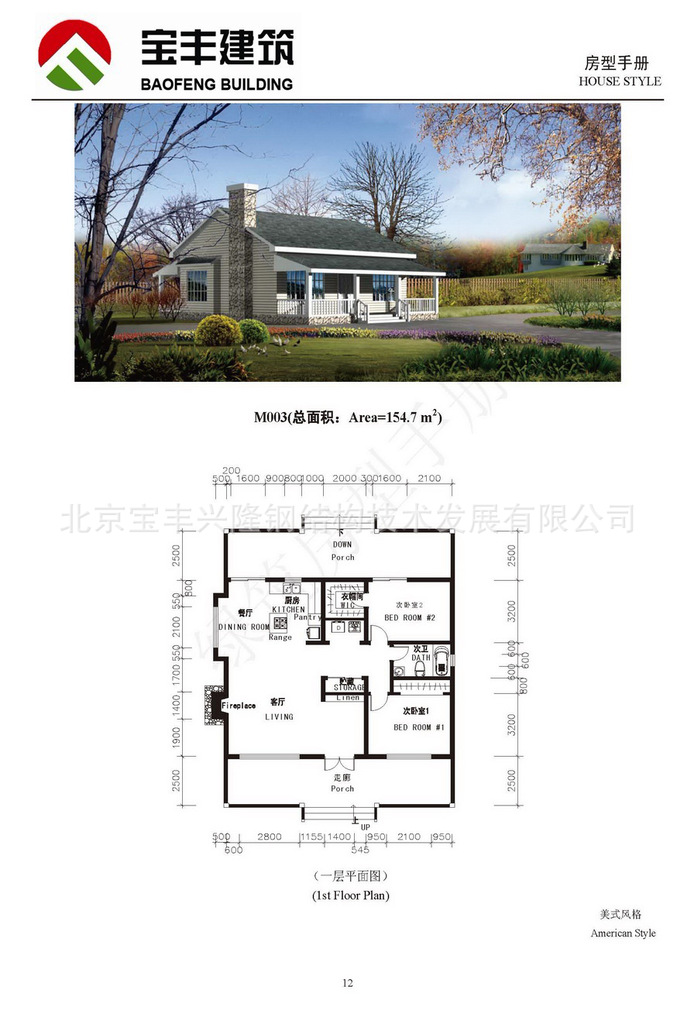 北京正奥宝丰建筑科技发展有限公司是北京宝丰集团下属的分公 司,宝丰集团公司成立于1998年,座落于风景秀美的北京市大兴区采育开发区,公司占地 100亩,厂房面积35000平方米,是一家集设计、制造、安装为一体的大型钢结构房屋制造集 团公司,也是最早从事建筑钢结构及配套维护材料的生产企业之一。公司是中国建筑金属结构 协会会员单位,中国钢结构协会会员单位、国际ISO9001、ISO14000认证企业,集团公司下 设:北京宝丰兴隆钢结构技术发展有限公司、北京宝丰园钢结构工程有限公司、北京宝丰兴隆 国际贸易有限公司、北京宝丰压型板厂等。