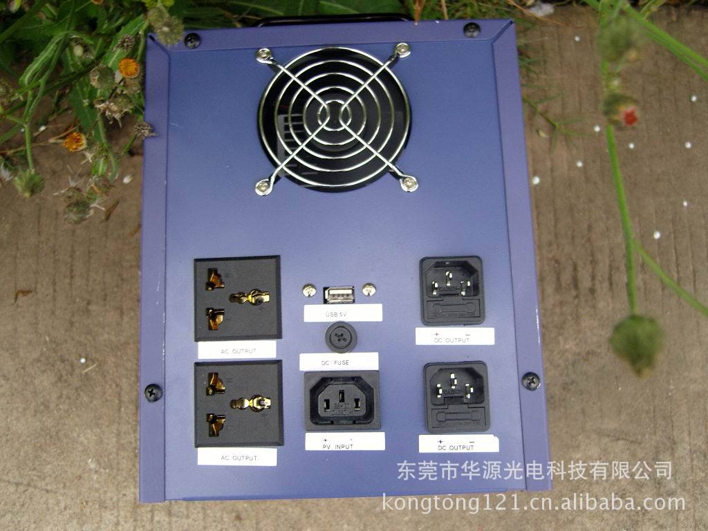 它的主要功能为:系统箱上面配有两个直流输出插口,两个交流输出插口,一个USB输出插口,可供直流和交流用电器使用。