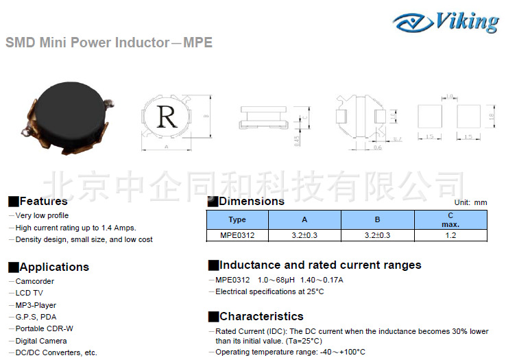 MPE0312 1.0~68μH 1.40~0.17A注:此数据为25°C温度下的测试结果