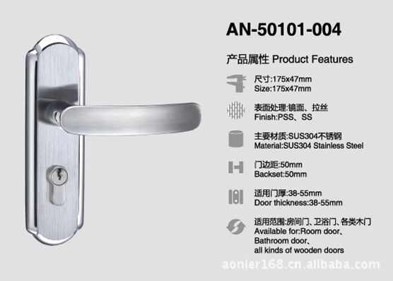 不锈钢门锁 sus304不锈钢执手锁 插芯锁 房门锁 50门锁