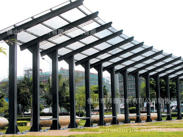 光学性能:透光率达50%至92%。无色透明阳光板可提供的透明度和表面光泽度,着色板能阻挡太阳光中最强的部分,使透过的光线柔和。