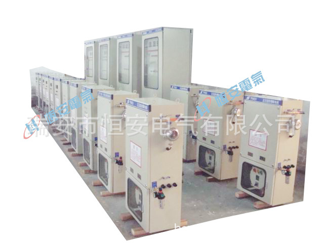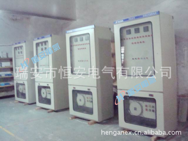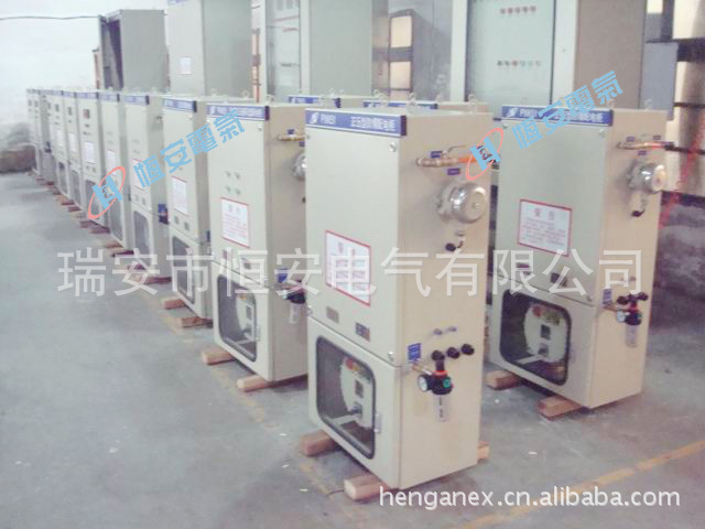型号含义 PXK-□□/□/□T 特殊要求(无要求可不注) 外形尺寸:宽X高X厚(mm) S:联锁(用户配电与正压自控系统低压联锁) (不要求可不注) t:通风型 b:补偿型 X:箱式 Q:琴台式 G1:柜式1(上下结构) G2:柜式2(左右结构) 正压型防爆配电柜 二 产品结构概述 本产品适用于石油化工、海上钻井平台、冶金、医药、轻工、纺织、食品、生物工程、航天航空工程以及军事设施等工厂中,具有ⅡA、ⅡB、ⅡC类T1~T4爆炸性气体或蒸气环境;海拔高度不超过2000米;25℃时,相对湿度95%以下;工作环境温度-20℃~+40℃之间。可根据用户要求安装各种普通的检测仪表、分 析仪表、显示仪表、变压器、软启动器、变频器、微电脑触摸屏以及普通电器元件,对用户内装电器元件基本不受限制。 配电柜由柜体、自控系统、布气系统、报警系统、配电系统组成;正压腔内装部分控制系统的防爆元件及用户的配电系统元件。 本配电柜采用Q235钢板焊接而成,对其各接合面都经过了特殊的密封处理。 本配电柜进气方式为通风型,即不间断连续供气,正压腔内装元件的工作热量可随气路带走,具有很好的散热效果。 本产品引用GB3836.1-2000 ,GB3836.5-2004以及相关标准设计、制造、检验。 三 产品的工作原理 配电柜在自动控制系统的控制下,通入保护气体,正压腔内压力高于正压腔外的压力,形成微正压的安全小环境,从而阻止了可燃性危险气体进入正压腔内,保证内装普通仪表和电器元件的安全运行。 自动控制系统主要完成手动换气、补气、超高压自动报警和排气、欠压报警、低压联锁断电等系列功能。(本配电柜具有低压联锁功能,低于规定的气压值(50Pa)时,自动切断进入正压腔的用户配电电源) 四 产品的安装 一、 柜体安装 1、 柜体的安装位置:户内或户外有棚顶,无明显震动平坦的地方。 2、 本产品安装方式为落地式和壁挂式,本柜设置了专用于固定的安装孔,具体参数详见技术附件或产品实物。 3、 布线方式为电缆布线,用户电缆结构可参考相关国家标准和行业标准,并结合本柜的结构要求进行设计、施工。 4、 搬运时注意,本产品严禁大幅度倾斜,倾斜度不大于100。 5、 本产品在运输、安装定位时,严禁采用撬、锤等方式进行搬动。否则,可能影响产品的密封性能,导致本产品无法正常运行。 6、 本产品设置了进气口和排气口,供用户接管。用户须按“气路管道布置图”布置进气管道,排气口经过防火阀后在现场排放或引至安全区域排放,用户现场须提供进气气源(保护气体),气源压力一般控制在0.2-0.6MPa,进气气源为净化空气(如:仪表风)或氮气,(注意:在密闭的操作室里,要谨慎使用氮气作为保护气体,若必须使用氮气作保护气体,请注意现场通风,以确保人身安全)。 7、 由于内装工控电器、触摸屏等精密电器,气源进口处需加装干燥过滤器,以确保气源为干燥清洁的空气,否则会影响电器的使用寿命。 8、 严禁进气气源为爆炸性混合气体!! 二、 用户元件的安装 1、 由于内装配电系统元件由用户自行调整,因此,用户必须在安全区内进行设定、调试。 2、 不得撤拆面板上的电器元件,以免影响柜体的气密性能。 三、 电气安装 1、 本产品必须由专业电工,进行操作。 2、 用户按我公司提供的电器系统图、接线图、端子图等技术文件,结合产品实际情况逐一对应进行接线。 3、 接线时,请注意各进出电缆的密封性(严禁将通头中的密封圈弃之不用),并视各电缆的松紧程度,用防爆胶泥作适当的密封处理。 4、 用户的接线、调试完后,将各门关闭时,一定要保证其密封性能。 5、 本柜体必须按要求将接地线接到专用接地螺丝上。 五 产品的调试 本产品出厂时,正压自控部分已经过调试,但用户在具体使用时,仍须根据现场情况重新调试后再使用。 一、 本产品适用于AC220V、50Hz配电系统。 二、 本产品调试分两部分 1、 自控部分调试 1)调试前检查 自动控制系统部分主要为隔爆型防爆电器,主要由防爆控制箱、防爆控制按钮、防爆指示灯、微压表等组成。检查各部分是否完好无损,有无影响防爆性能等,接线是否正确(接控制电源:AC220V),手动排气阀和是否打开。一切正常后方可进行调试。 2)调试方法 调试前,先打开排气手动阀再打开进气手动阀、约换气30分钟后、接通电源,红色“电源”指示灯亮,此时按下起动按钮、绿色“运行”指示灯亮、压力表处于受电状态、再调节进气、排气阀大小,让压力仪表持续显示值维持在200Pa左右。,,自动报警系统进入监控状态;些时,该柜进入正常使用状态。在使用过程中,若由于外界气源原因将正压腔压力升高于1000Pa时,卸压电磁阀将打开、同时报警灯闪烁报警,(此时因立即关小进气手动阀或开大排气手动阀,调节压力持续维持在200Pa左右)。若柜内压力低于100Pa时,进入低压警铃报警状态(此时因立即开大进气手动阀或关小手动排气阀,调节压力持续维持在200Pa左右);当进气故障未排除,而气压值低于50Pa时,自动控制系统将自动切断用户的配电电源,将一直进入欠压报警状态;必须按下停止按钮,才能解除警铃报警状态.气源正常后,将进入新一轮“换气”过程后,操作顺序同上,才能恢复正常工作。 3)调试注意事项: 本产品出厂时,各参数已设定好,严禁用户擅自更改参数。用户在调试时请注意仪表、自控线路及取样管路的畅通。 2、 用户配电系统部分调试 1)本产品经运输、安装等环节后,必须