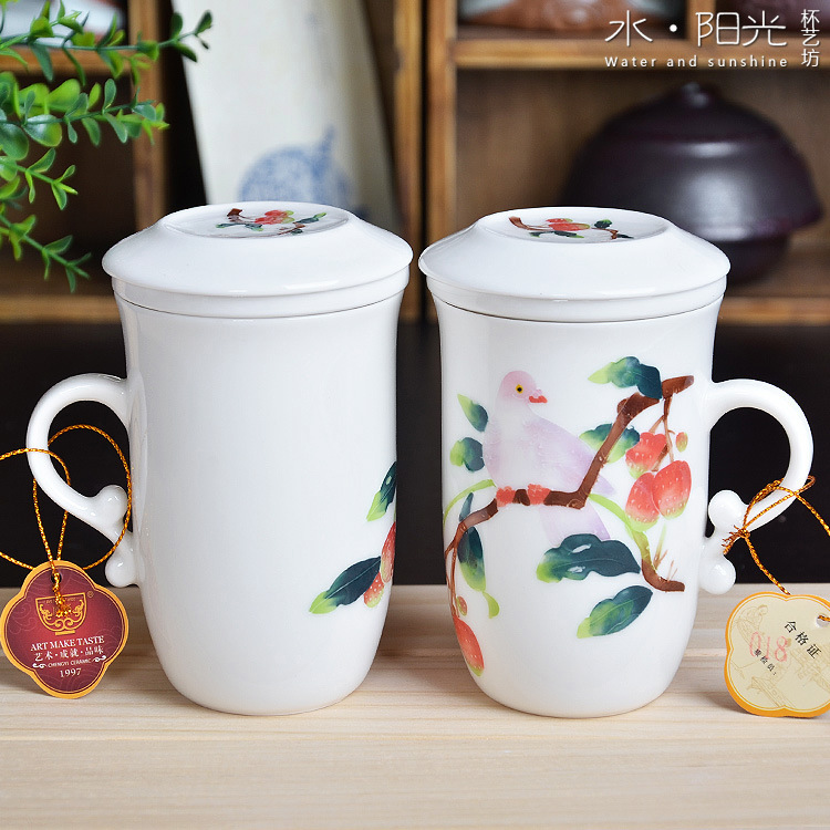 成艺陶瓷 手绘红荔枝陶瓷亚光杯 过滤胆茶杯 个人会议杯