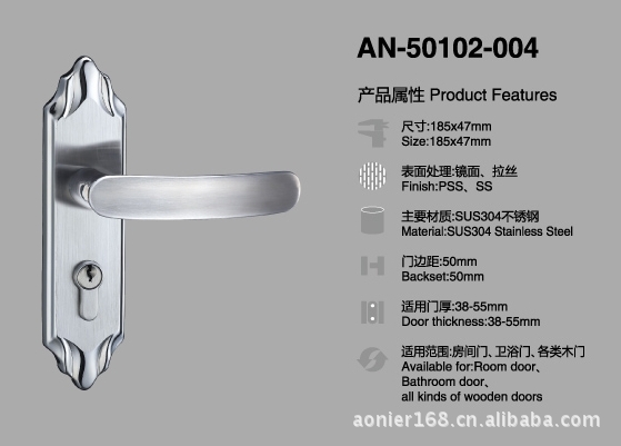 不锈钢门锁 sus304不锈钢执手锁 插芯锁 房门锁 50门锁