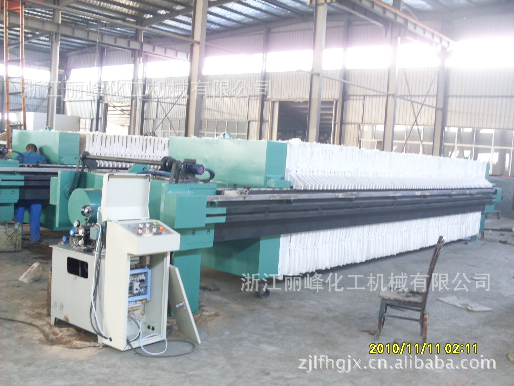 厢式压滤机由多块滤板叠合组成滤室,是以压力为过滤推动力的一种间歇性固液分离设备,应用于工业生产已有悠久历史,它具有分离效果好、出液清澈、适应性广,特别对于细微物料的分离,有其独特的优越性。压滤机与其他类型脱水机相比,出渣含水率最低(15%~60%左右)、出液最清、使用简单、维护方便,如果从出渣干固性、减少渣料堆置占地面积、出液要求清和投资成本、运行维护费用等因素考虑,压滤机应该是首选方案,并符合国家十二五规划对污泥处置的要求;因此,广泛应用于化工、染料、石油、陶瓷、制药、制糖、食品、淀粉、饴糖、油漆、矿山、冶金及各行业的污水处理及固液分离等。