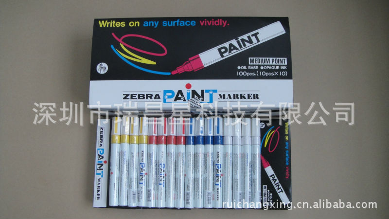 特点:无毒素,安全使用。超强覆盖性,不掉色,覆盖力特强,永不褪色,不被擦掉,可书写于多种物件表面(特别可写于金属表面上)。