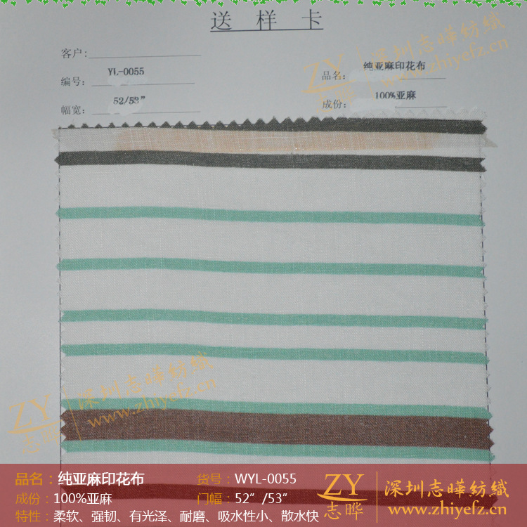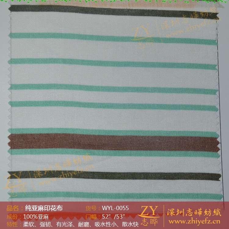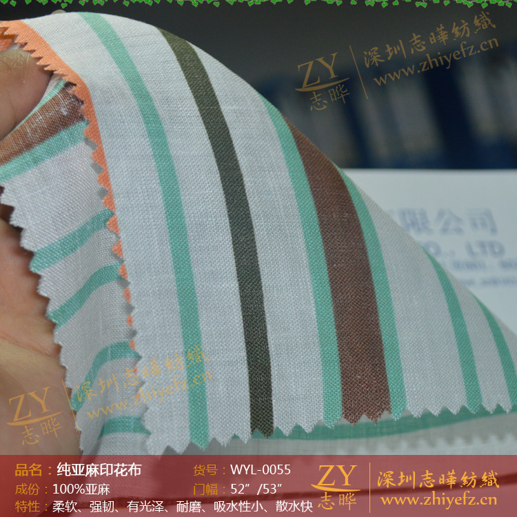 货号: WYL-0055 货名: 纯亚麻印花布 成分:100%亚麻