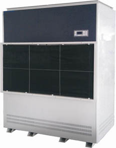 一般冷冻式除湿机的工作环境温度为5-38℃,超过38℃除湿机将实施自动保护而停机。但在物料干燥室内,其室内温度一般超过40℃,所以一般的冷冻除湿机无法在此环境下工作。现在一般企业的物料干燥方法是将干燥室内湿热空气通过风机强行外排。这样,室内的热量也随之排出室外。