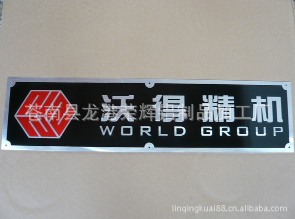 铝标加工方法:经油压机挤压后字体、边框和LOGO可凹可凸。凹下去一般采用点漆上色,凸起后一般是高光拉丝处理,也可再丝印颜色或氧化着色铝标牌底部一般喷层油漆再经高温烘烤,也可氧化其它颜色。背面可做脚柱和贴双面胶(国产胶和进口3M胶),也可在边沿打孔。
