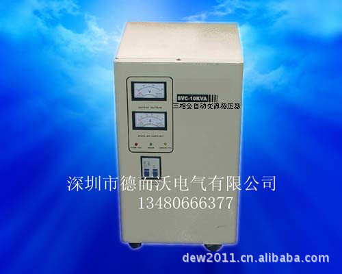 全自动交流稳压器,其结构由接触式自耦调节器、伺服式电动机、自动控制电路等组成,当电网电压不稳定或负载变化时,自动采样控制电路发出信号驱动伺服电机,调整自耦调节器碳刷的位置,使输出电压调整到额定值并达到稳定状态。三相高精度全自动交流稳压器是SVC/TNS/AVR系列单相产品性能的组合,其输入相制分三相四线制,输出电压为线电压380V在额定电容量范围内,可同时供电源电压为三相380V用电设备使用,并设有过压保护功能。