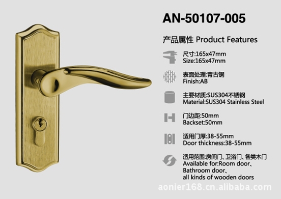 奥尼尔锁业,因锁而生成,以锁而留名。总公司奥尔五金,一直生产不锈钢门窗配件等系列产品,积累二十多年生产加工不锈钢制品的丰富经验,集结本行业一流技术人员。现将国家食用级不锈钢304引入门锁行业,告别传统门锁材料锌合金容易变色老化,不锈钢201及202容易生锈的弊病,让万千门户进入真正的"钢将军"时代!本公司现有员工300多人,其中高级技术人员40多名。年生产能力100万套以上。