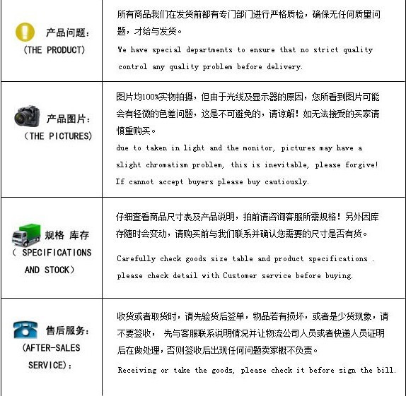 *本店保证所有产品均为合格品,无任何质量问题,如您在签收后发现有质量问题需要调换,需承担单程运费