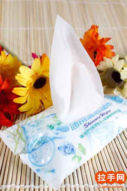 本产品湿巾采用高档无纺水刺布,加RO纯净水、清洁护理液与香精等精制而成。用于日常生活中皮肤的清洁与护理,使用本产品后皮肤光滑清爽散发出淡淡的清香,是您的理想清洁用品。