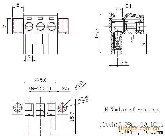 材质及电镀螺丝:M2.5,钢,镀锌触点材料:磷青铜塑件:PA66,UL94V-0