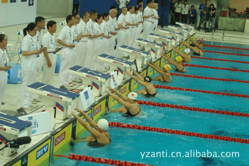1、所有水线设计满足FINA(2009-2013)规则有关奥运会标准的规定。2、水线限度地吸收由游泳运动员产生的波浪,可能地保持水面的平稳。 3、水线有正确为泳池距离而用的标码并带有按照FINA(2009-2013)规章制定的颜色。4、每条水线单元为150mm直径和200mm长,整条水线有24个筒和其它组合元件用来减少水浪,所有部件由聚乙烯和聚丙烯材料制作。5、水线由满足ANSI-316L不锈钢缆绳串引固定,每条水线应有固定的挂钩。6、锁紧器外部应由增强尼龙制成,光滑安全,以免划手。