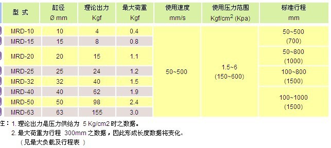 四、台湾气立可(CHELIC)无杆缸MRD系列产品详细参数: