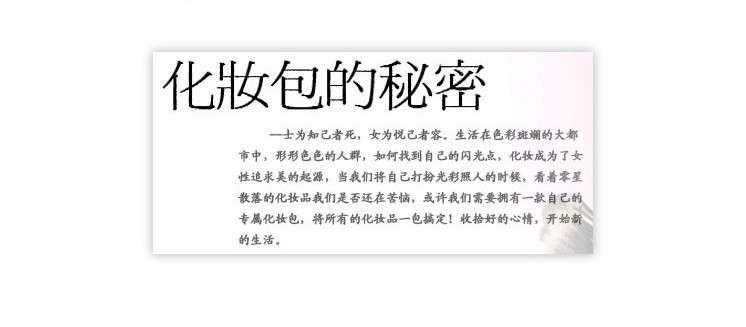 女人的包包内总是藏着大玄机,里面包藏着所有美丽的梦想与秘密...,化妆包是每个女人的心中最爱,装载着她们日常最钟爱的随身单品。