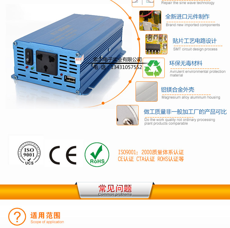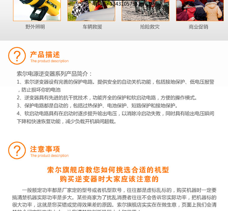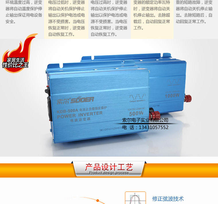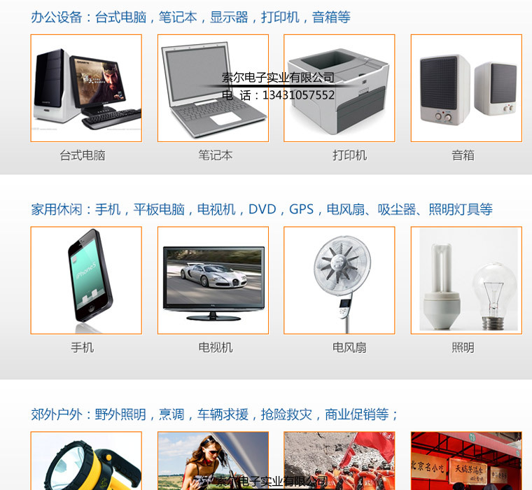 索尔品牌旗下有万能遥控器、电源逆变器、充电器、车载液晶及车载影音系统、DVD/VCD激光头、移动电源转换器、焊锡丝、电烙铁、AV连接线、通用型电磁炉主板、VCD/DVD/DVB开关电源板、TV主板及相关电子配套产品。
