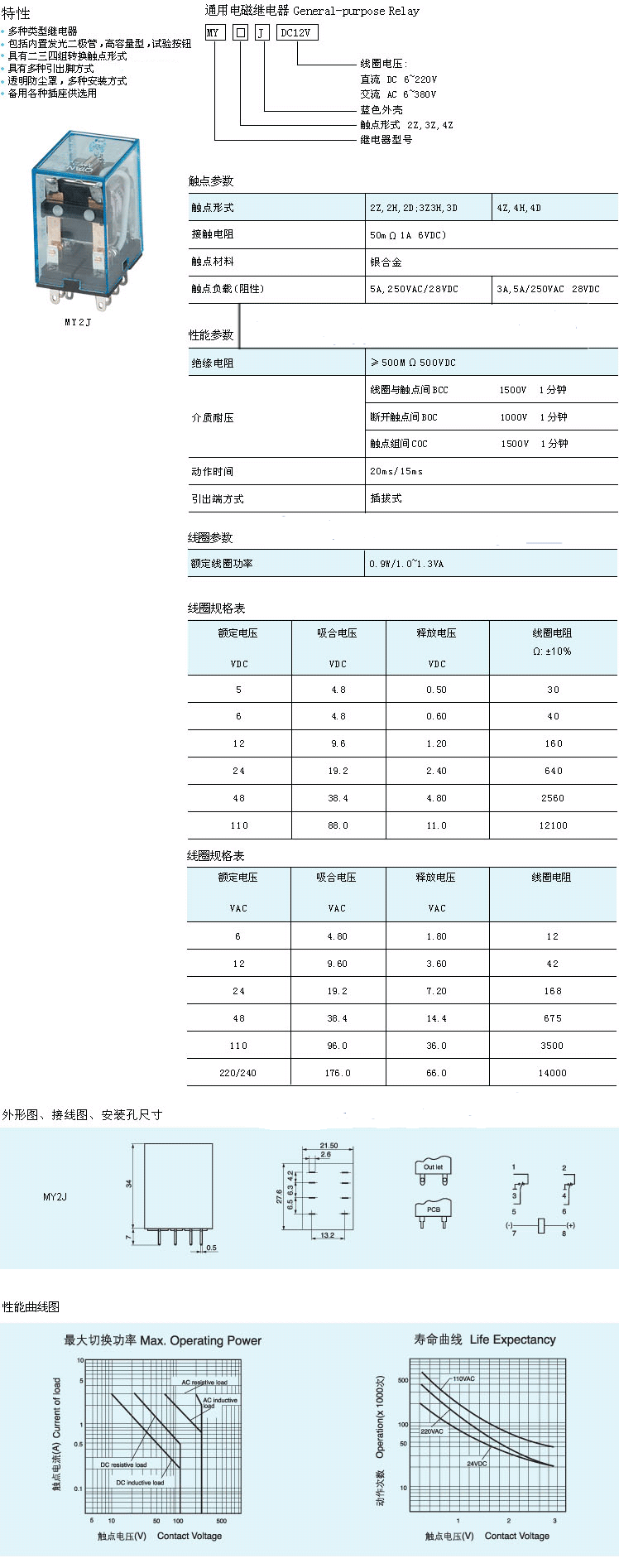 OMRON欧姆龙小型中间电磁继电器 MY3NJ (HH53P) 带灯 24V 220V