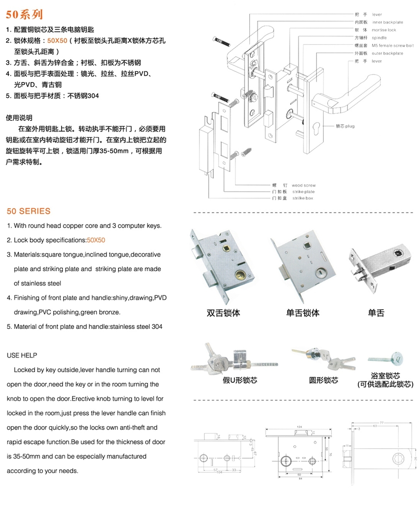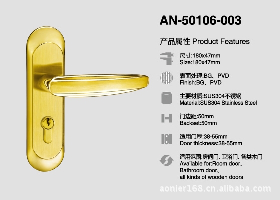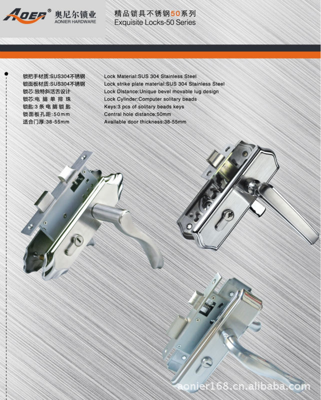 奥尼尔锁业,因锁而生成,以锁而留名。总公司奥尔五金,一直生产不锈钢门窗配件等系列产品,积累二十多年生产加工不锈钢制品的丰富经验,集结本行业一流技术人员。现将国家食用级不锈钢304引入门锁行业,告别传统门锁材料锌合金容易变色老化,不锈钢201及202容易生锈的弊病,让万千门户进入真正的"钢将军"时代!本公司现有员工300多人,其中高级技术人员40多名。年生产能力100万套以上。