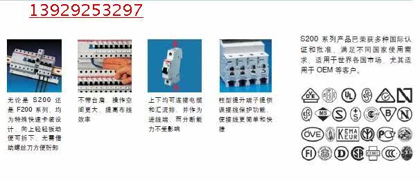 ABB微型断路器所有微型断路器均符合IEC / EN 60898 和 IEC / EN 60947-2标准。 abb微型断路 (MCBs) 家用 / 民用安装 : 典型分断能力3 / 4,5 / 6 kA o 家用Compact SH 200 T, SH 200 L, SH 200 家用或小型商场安装: 分断能力高达10 kA o 特别型 : S440, S950 / 970 o proM compact S200, S200 M 工业应用安装:分断能力高达25 kA 和具有特别附件 o proM compact S200, S200M, S200P, S200U, S200U P公用事业安装特别的、可选择性和具有后备功能的微型断路器,分断能力高达25 kA ,可对下游断路器实现完全选择性。 o S 700系列 工业和商业应用,具有高分断能力和特别特性/附件 o S200P, 290, S500, S610, S220, S800