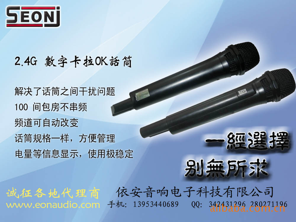 2.4G数字传输,频响范围宽,音质好,锂电充电电池,特别适合高档KTV,会议等场合并且有着100个房间同时使用不串频的优势。