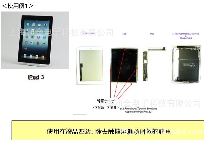 适用范围:触摸屏启动时的静电..基板的电磁遮蔽用途..照相机镜头软板遮蔽用途.