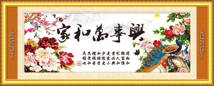 100%精准印花 十字绣批发 客厅新款 家和万事兴孔雀牡丹五福临门