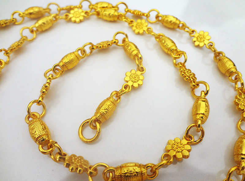(1)市场上有很多的仿黄金和仿白金的饰品,因为材质和做工工艺的不同,保色的时间也是不一样的长的,其中材质方面有铜的,合金的,还有铁的,就成本上来说,铜是贵的,其次是合金的,然后才是铁。而一般也是铜镀金的要保色的时间要长一点,然后才是铁和合金的。另外保色的时间还和做工工艺的不同而不同。其中工艺方面又分为:仿黄金的有镀亮金和镀真金的两种,镀真金的保色时间要长很多,不过价格要高很多,一般比镀亮金的要高8到10元左右一米,因为里面确实是有真金的成分在里面的。我们厂一般都是镀亮金的,如果有特殊的要求镀真金的,我们厂也是可以做的,不过量要求是比较大的。单款要在50米以上。仿白金一般都是镀亮鉻,一般不会掉色,保色时间非常长。一般2到3年不会掉色的。另外镀的厚度也有不一样,保色的时间也是不一样的,镀的厚的保色时间长,镀的薄的保色的时间要短一点。
