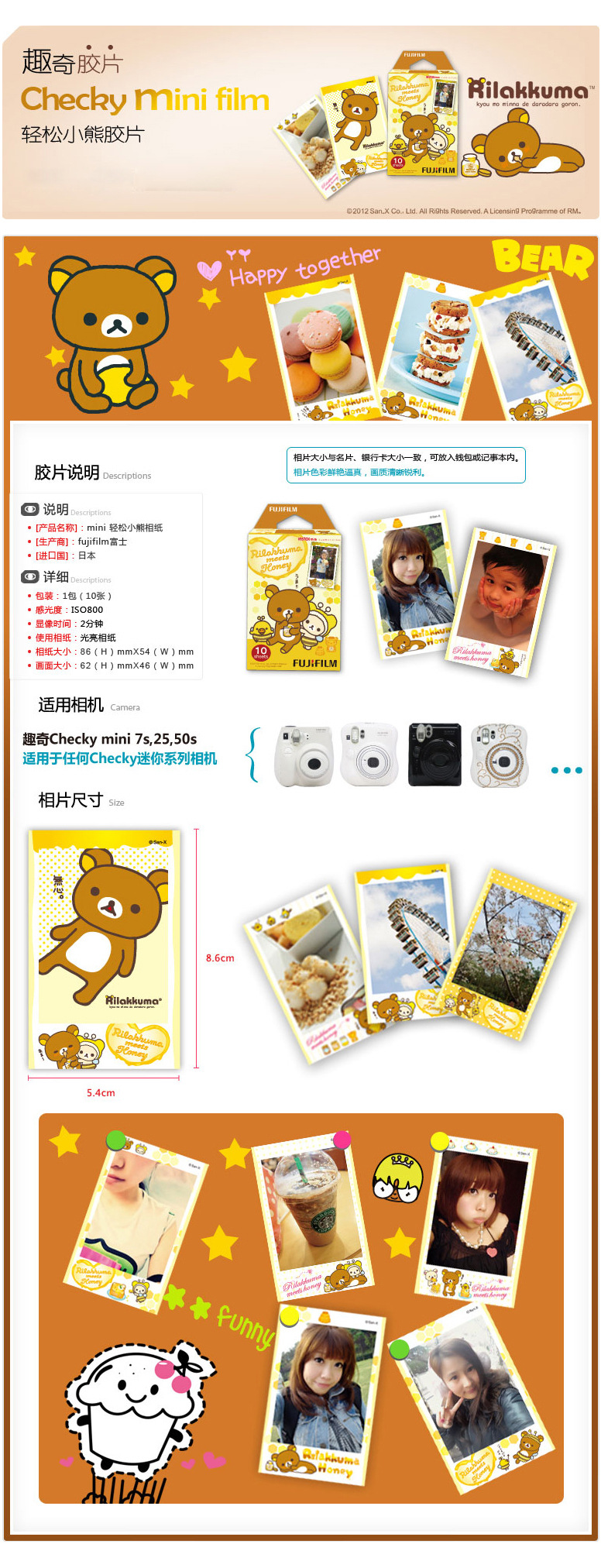 适用范围:富士一次成像相机迷你系列相机mini7、mini7s、mini10、