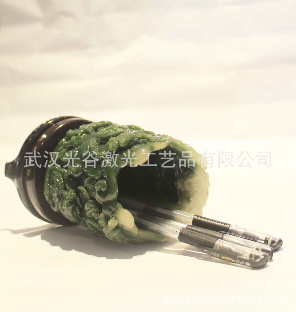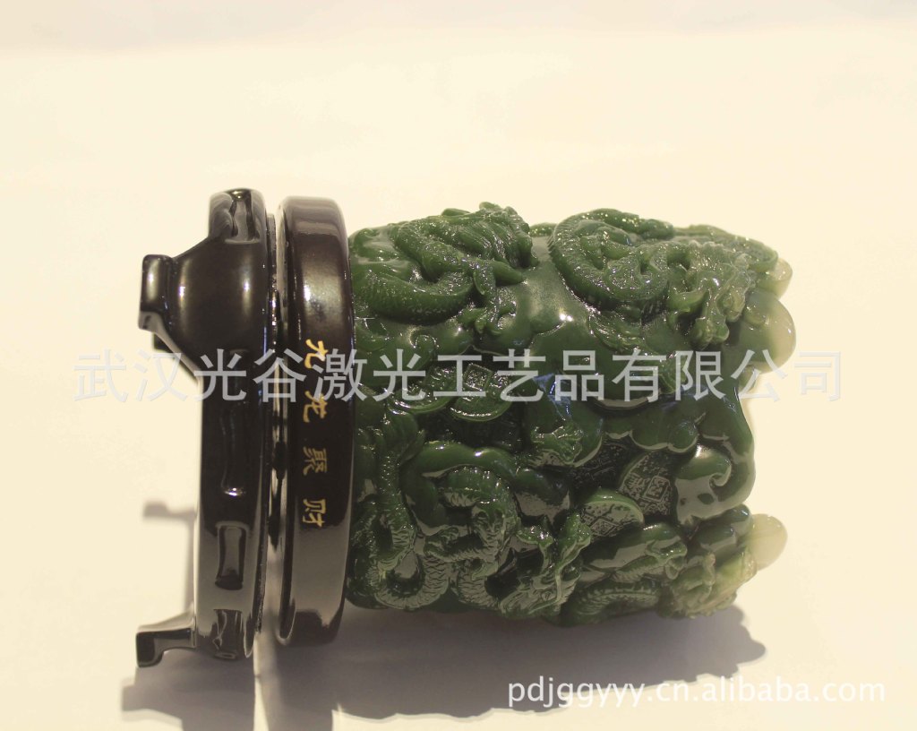 笔筒材质为仿玉材质,笔筒上由九条龙构成,笔筒可旋转,颜色为深绿色。