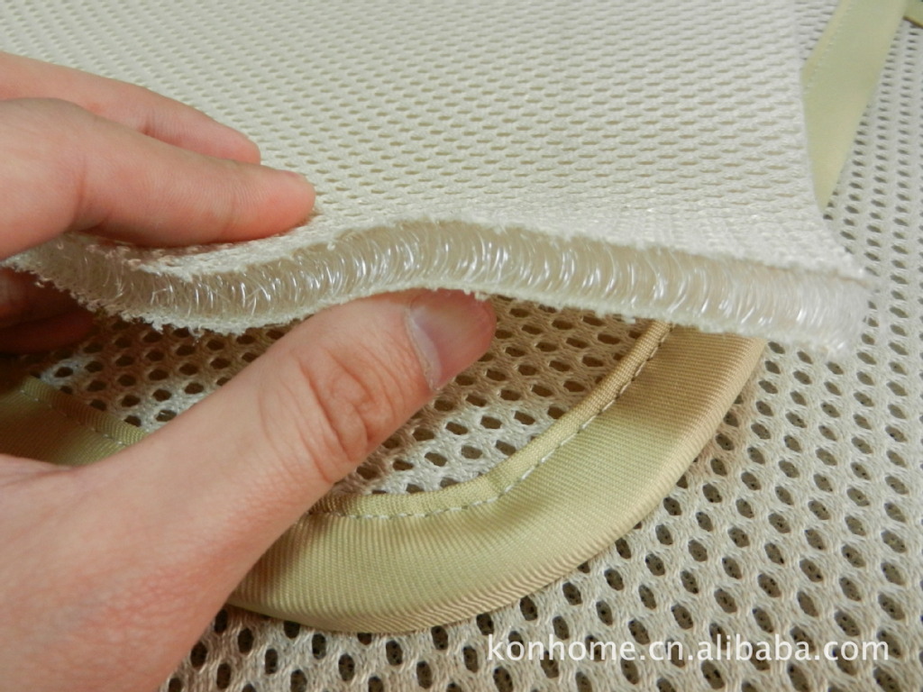 3D材料:指高弹高密三维立体中空结构,上下网孔六面透气中间采用功能性聚酯纤维材料,呈X-90°支撑的一种革命性的软体材料;