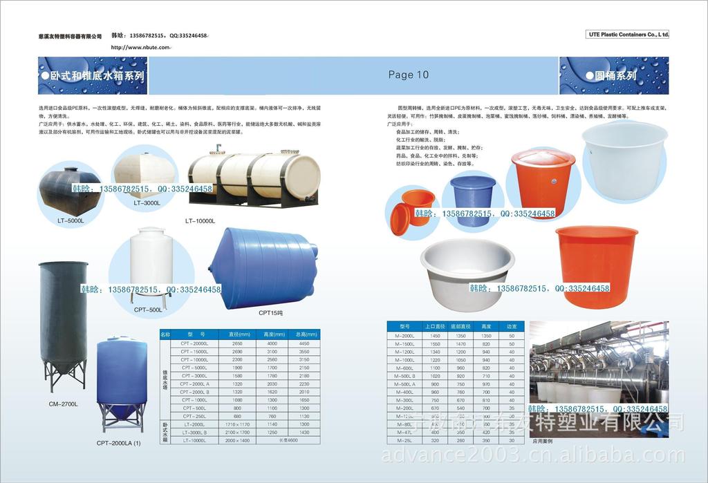友特容器有限公司专业生产各类滚塑产品、各类大小的化粪池,大型全塑水箱、大型化工储罐、原水箱、蓄水箱、化工储罐、加药箱、溶盐箱、食品周转桶、发酵缸、槽、公路隔离墩、浮球、玩具。广泛用于高层建筑二次供水、蓄水、水处理、环保、化工、机械、电子、五金、医药食品、养殖、酿造、蔬菜腌制冷冻、温室园艺浇灌、水产养殖、纺织印染、液体储运等。