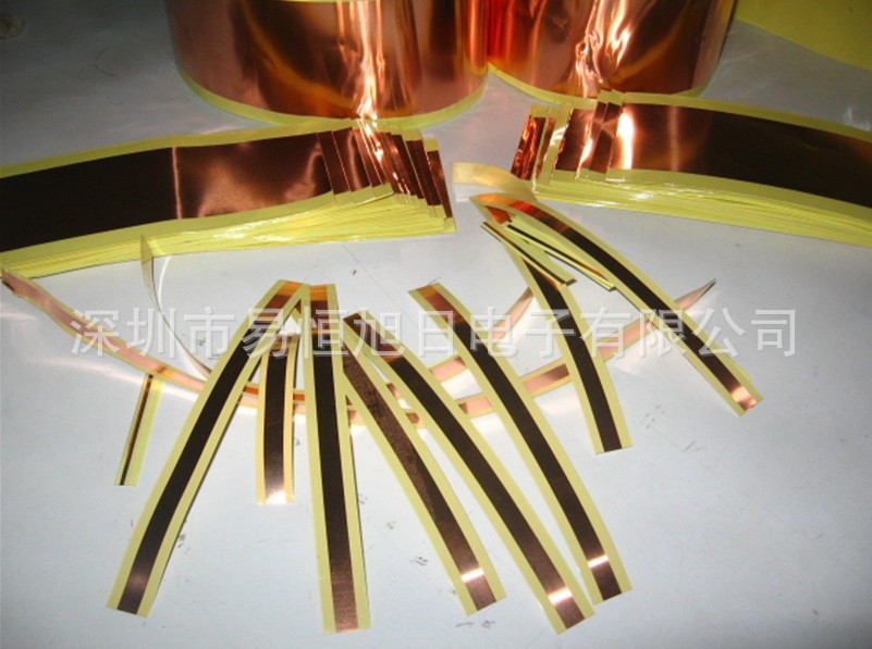 4.铜箔胶带分为单面覆胶和双面覆胶。单面覆胶的铜箔胶带又分为单导铜箔胶带和双导铜箔胶带,单导铜箔胶带即指覆胶面不导电,只有另外一面铜导电,故称单导即单面导电;双导铜箔胶带是指覆胶面导电,而且另一面铜本身也导电,故称双导即双面导电。还有双面覆胶的铜箔胶带用来和其他材料加工成比较昂贵的复合材料,双面覆胶的铜箔其胶面也分导电和不导电两种.客户可以根据自己对导电的需求来选择