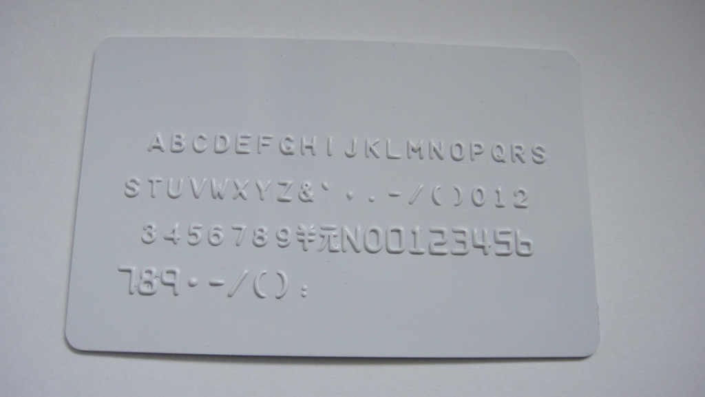 手动凸字机---手动打码机(手动凸字打码机)功能就是在PVC卡的表面压出突出的字母和数字,使PVC印卡具备可识别性和唯一性。市场上的凸码机有手动和电动两种。手动凸字机价格比较便宜,使用比较简单,所以中小制卡单位都使用手动凸字机。非常感谢您使用本厂手动凸字机,结构可靠,定位精确,体积小,外型美观,操作方便。适用于各大商场、娱乐、餐饮中心、证券交易中心、银行、保险业等。