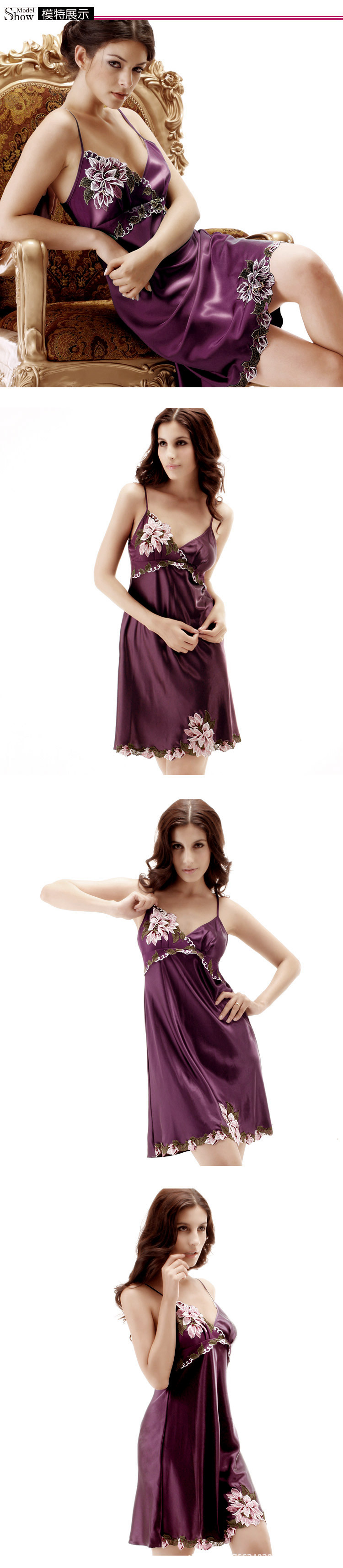 厂价直销品牌家居服新品仿真丝睡衣 性感时尚蕾丝女士睡裙8107