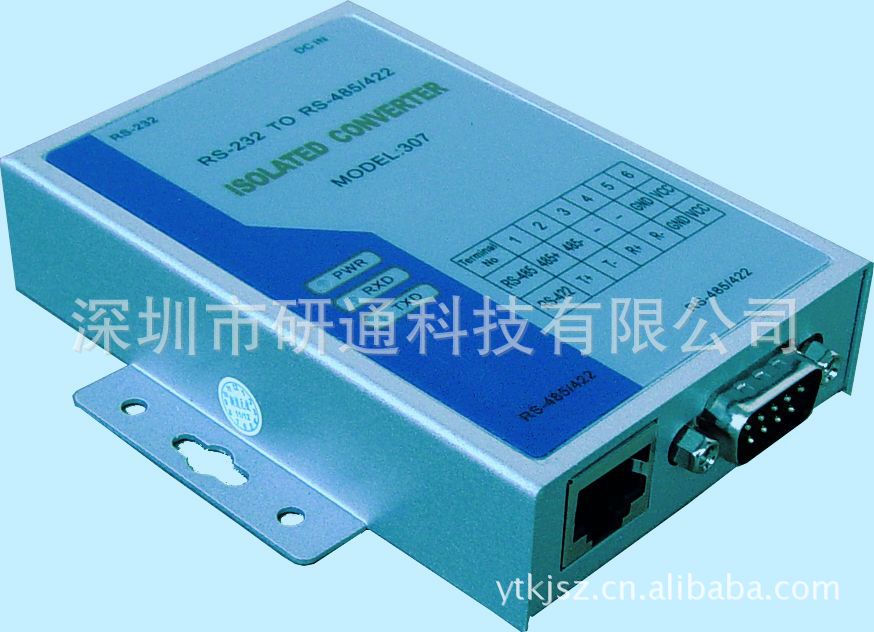 2、电气接口:RS-232接口输入DB9母头的连接器,RS-422/RS-485接口输出DB9公头的连接器