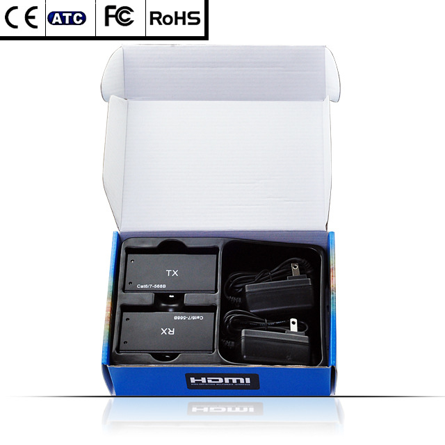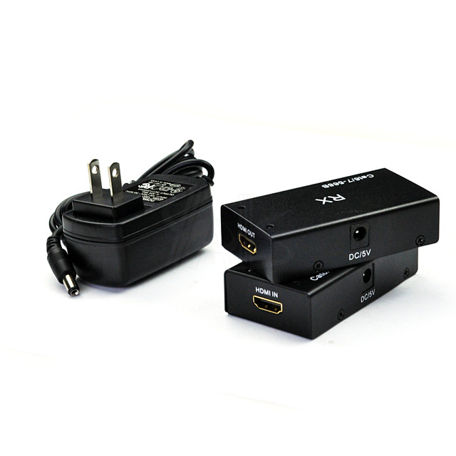 这款HDMI转网线延长器通过一根CAT5e或者CAT6线(推荐使用)替代HDMI线,将HDMI信号延长传输至60米以上,并且画质保持1080P。延长器的目的就是为了以低成本的线材来实现长距离的高清信号传输。