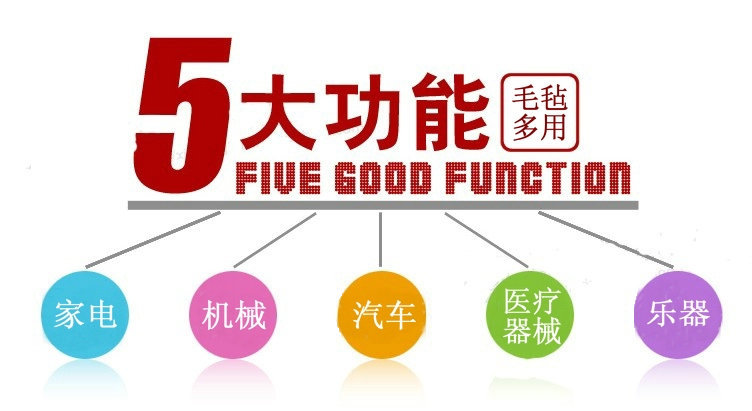 4、粘合机能好,密度紧凑机能较不乱不易疏松,可冲压出产各种外形毛毡零件。