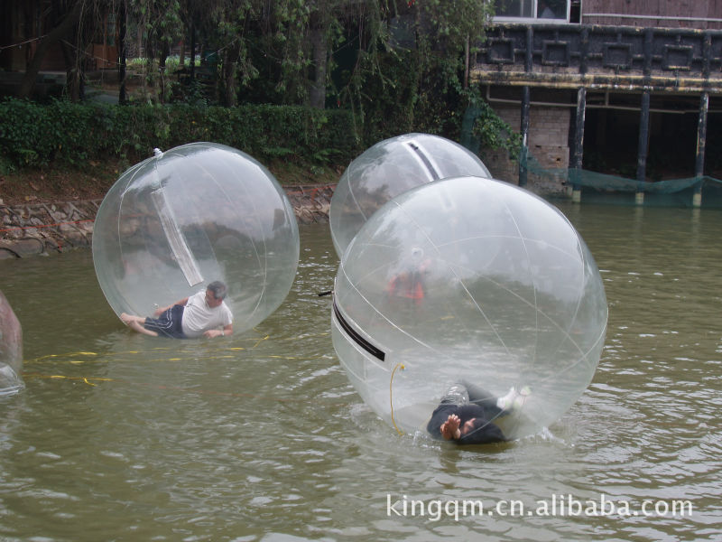 特点:采用进口环保高分子聚合物TPU 聚醚 (不分解) 制作。韧性好﹑耐磨﹑耐寒﹑耐油﹑耐水解耐老化﹑耐气候等优良特性。使用的防水防漏气拉链是用与航空及深海潜水领域的专业拉链具有高度安全的气密性及水密性。产品上备有安全绳扣及小型加氧设备专用气口 ,用来在海边使用和游客长时间玩耍。其操作简,拉开拉链人进去后开始用气泵充气,充满后(用手击打气球硬梆梆的)即可下水游玩。对水面没有任何污染,且是水上一道亮丽的风景线。非常激发年轻人及小朋友的好奇心。人在球里面的刺激、过瘾是其它水上娱乐项目无法能感受到的。