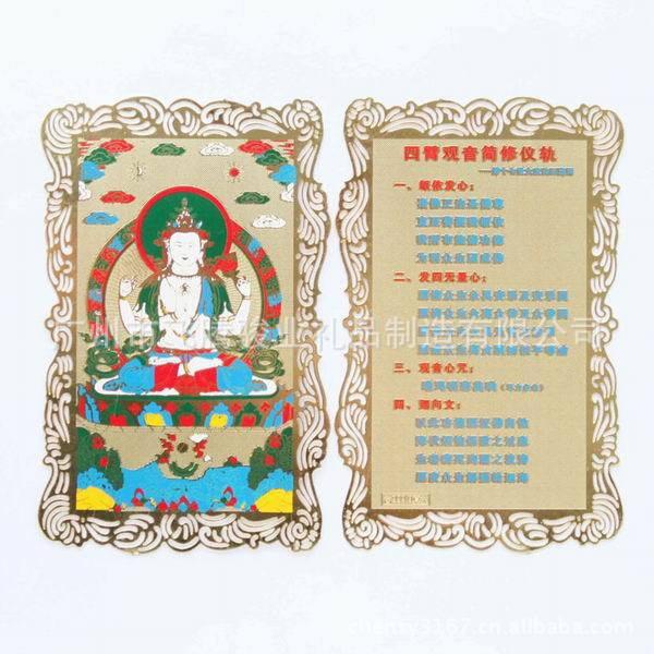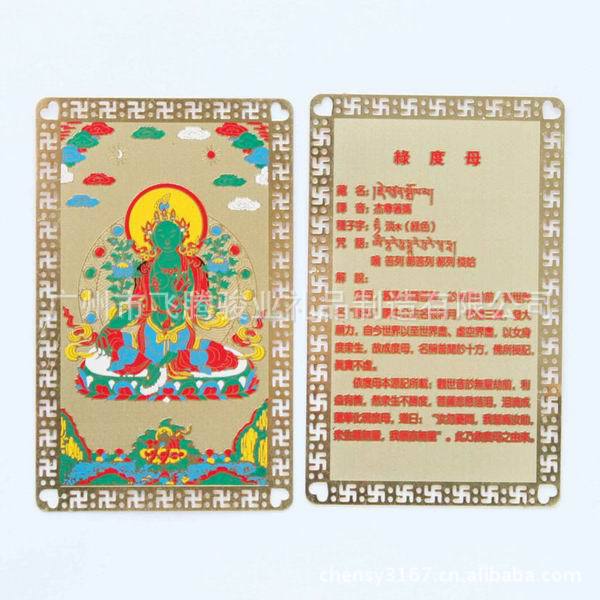 腐蚀工艺,表面有电镀、丝印、镀金、镀银等工艺,更可根据客人需求制作出您想要的艺术效果时尚礼品高档而精致,美观大方,物美价廉。供应飞腾金卡TK003 唐卡四臂观音 绿度母 批发 厂家