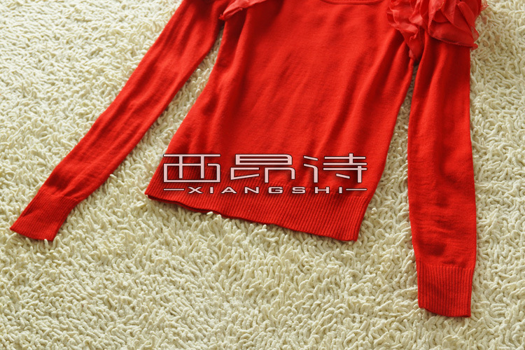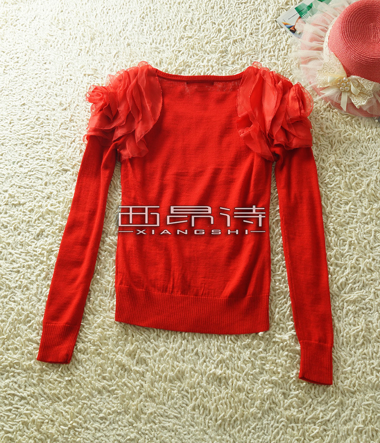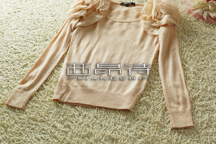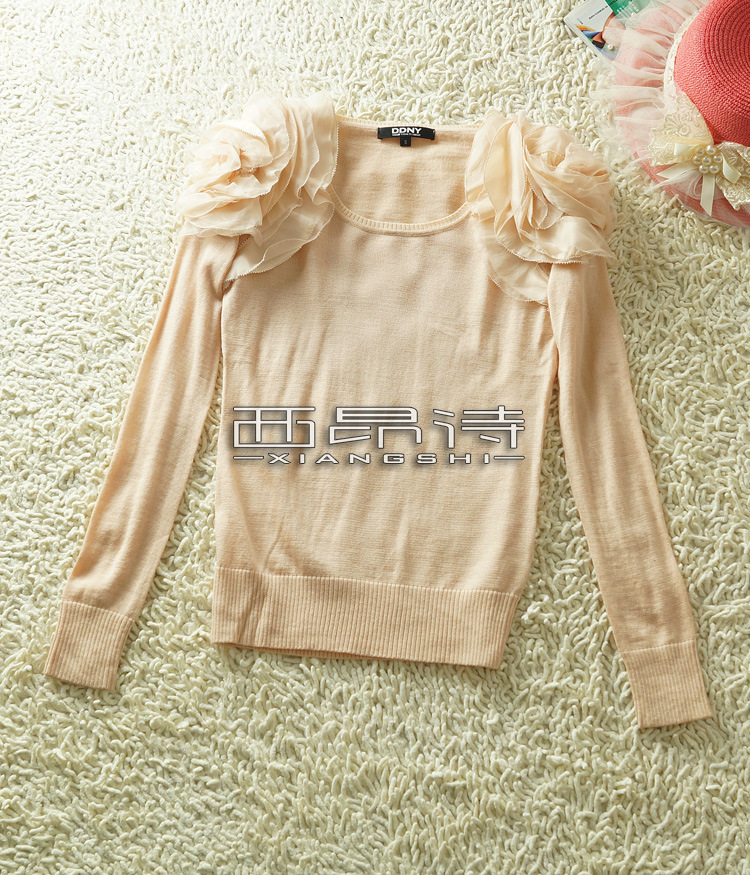 D_4005玫瑰花肩羊毛衫女式打底衫长袖淘宝开店货源卓雅同款