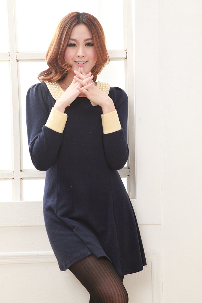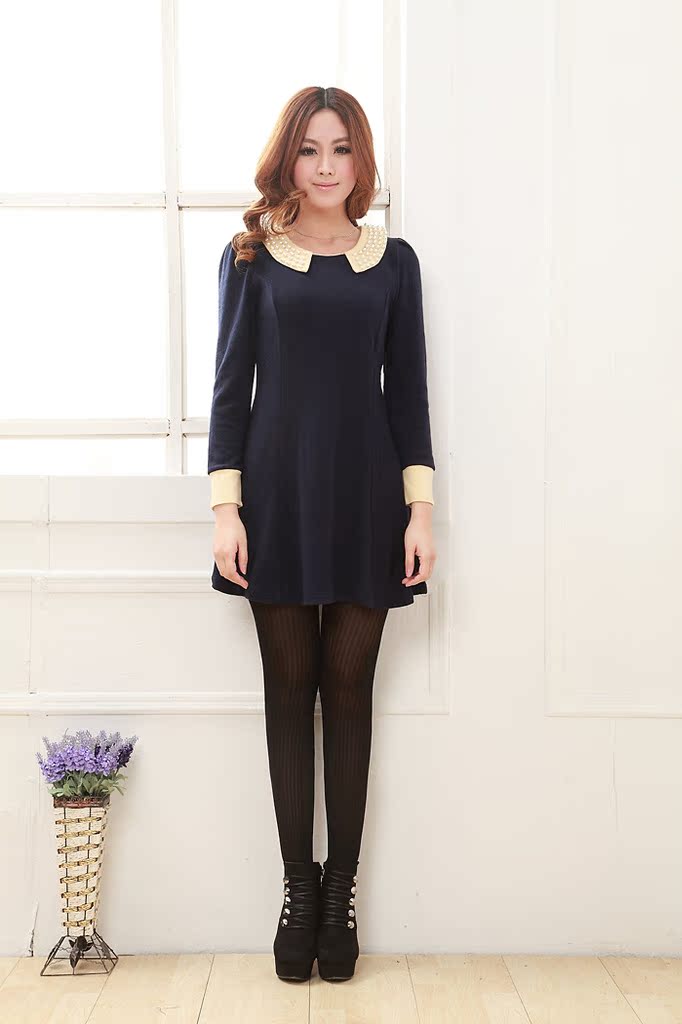 厂家供应 圆领长袖韩版超显身材连衣裙 时尚连衣裙 秋款连衣裙