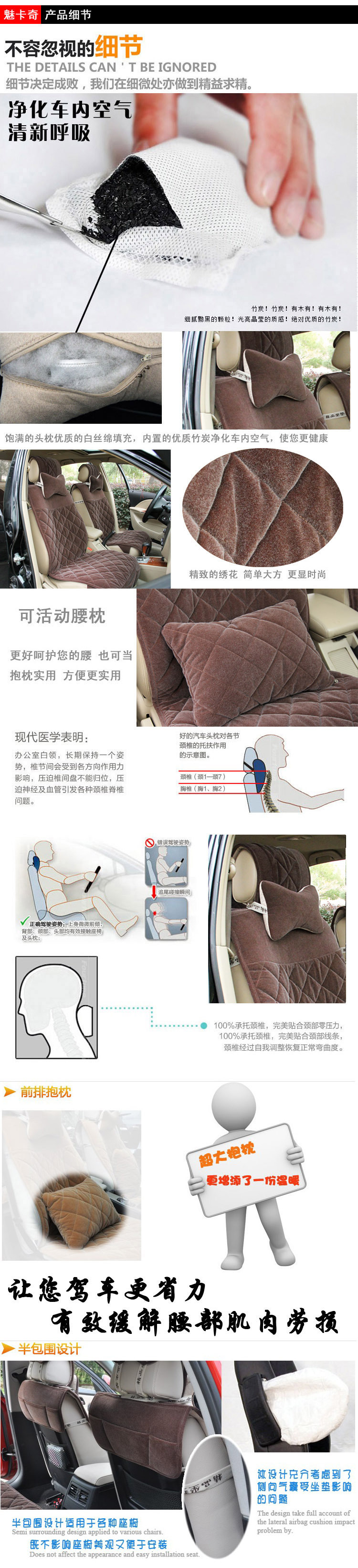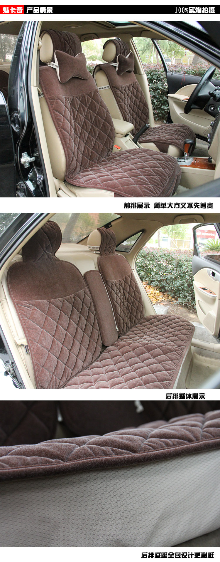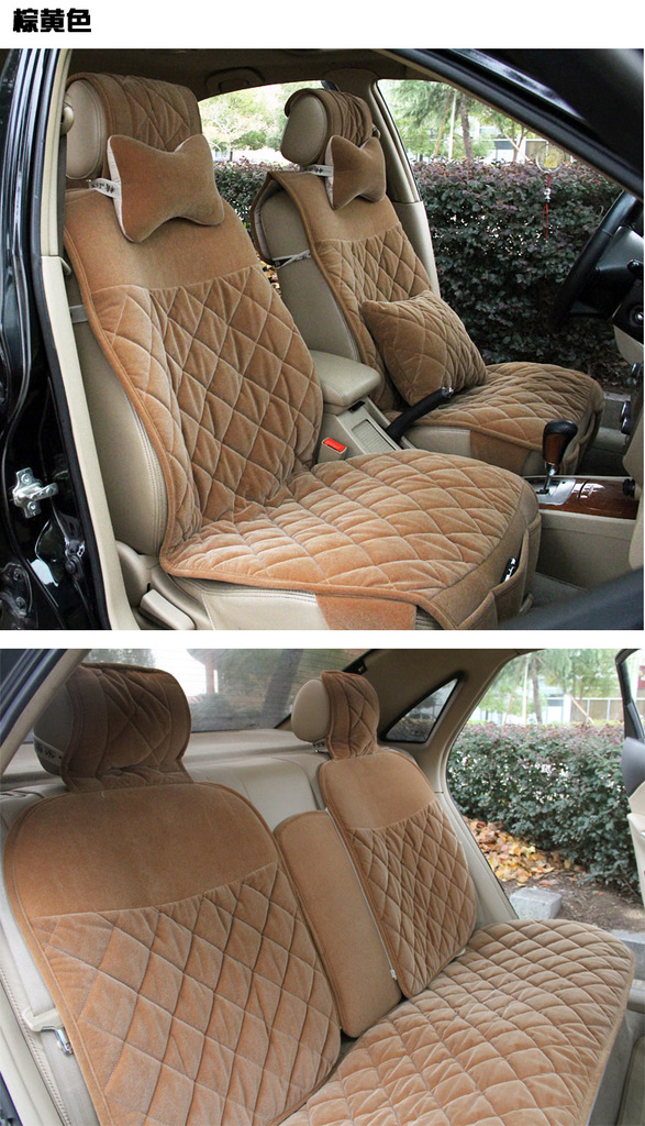 1、前座:A:先将座椅头枕略微拔起起,将头枕套两边插扣扣上。
