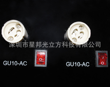 11、有二个线夹(AC output和DC12 output)和一个万能插坐(AC OUTPUT),,方便外接,所有灯坐都有一对一的开关和雕刻标识,以方便控制和识别。