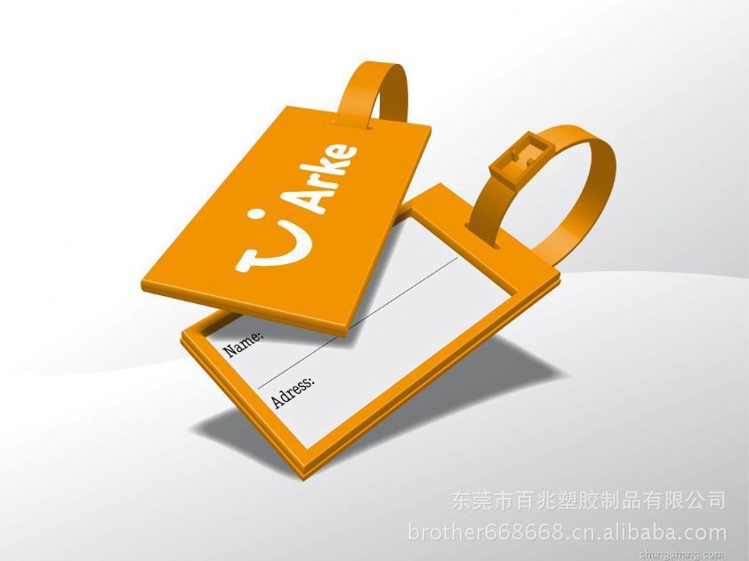 用途:行李牌可反复使用,耐磨损,清洗方便,使用寿命长。行李牌,是行李箱包的标识,可用在行李寄存处,或自己独用,也可加印公司logo做宣传。箱包生产厂可用来赠送给购买箱包的客户,起到低成本广告宣传的作用。款式新颖,造型独特,色彩多样,时尚潮流。主要用在酒店,行李包上,展会,参观,会员卡,贵宾卡,银行卡等行业。软胶行李牌,胶行李牌,滴胶行李牌,硅胶行李牌,滴塑行李牌可用塑胶,硬胶,软胶,胶,滴胶,橡胶,硅胶,滴塑,矽胶,点胶,PVC,矽利康,PVC软胶,PVC胶,PVC滴胶,PVC硅胶,PVC滴塑,PVC点胶等材料生产